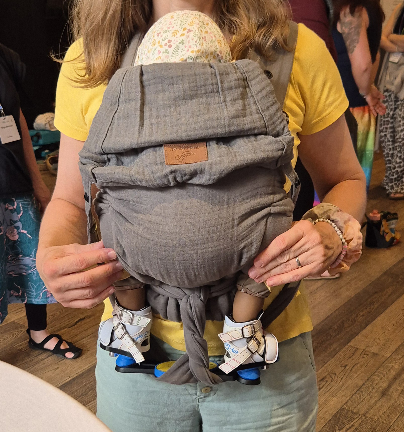 The Tragenetzwerk e.V. (Carrying Network) provides parents with specific advice on how best to carry their child on their body – for example, with a sling, carrier, back or front carrying system. At the beginning of July, carrying consultants from all over Germany and beyond met in Isernhagen to discuss current issues and solutions. One of the highlights of the symposium was the presentation by physiotherapist Birgit Kienzle-Müller on the topic of “Carrying children with special needs.” As a manufacturer of clubfoot braces, we were invited to the symposium to accompany a total of three workshops with our expertise and our orthotic systems.